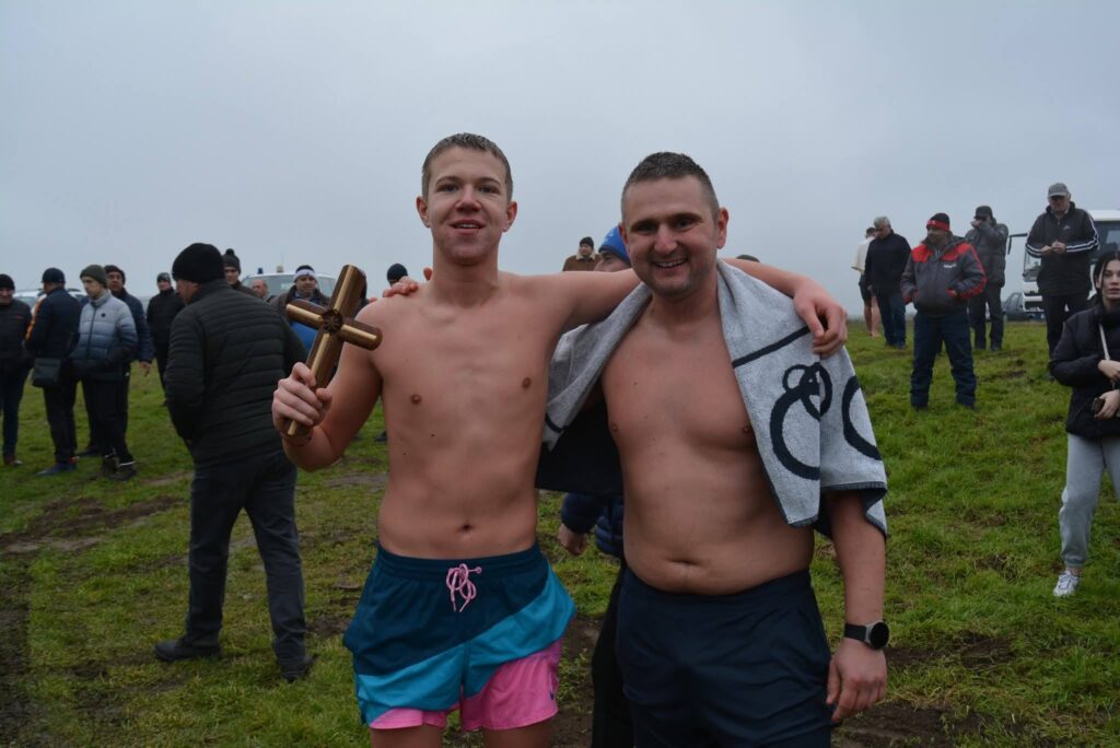 Валентин Велев от Хб клас хвана Богоявленския кръст в ледените води на река Росица, край град Бяла черква. Ученикът, който изучава „Механизация на селското стопанство“, се бори за кръста със 17 смелчаци, сред които и учителят по физическо възпитание в професионалната гимназия Асен Георгиев. Пожелаваме на Валентин и участниците в Богоявленския ритуал да бъдат здрави и да имат успешна година! Честит Йордановден на имениците!