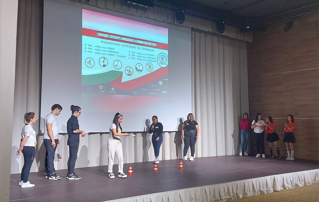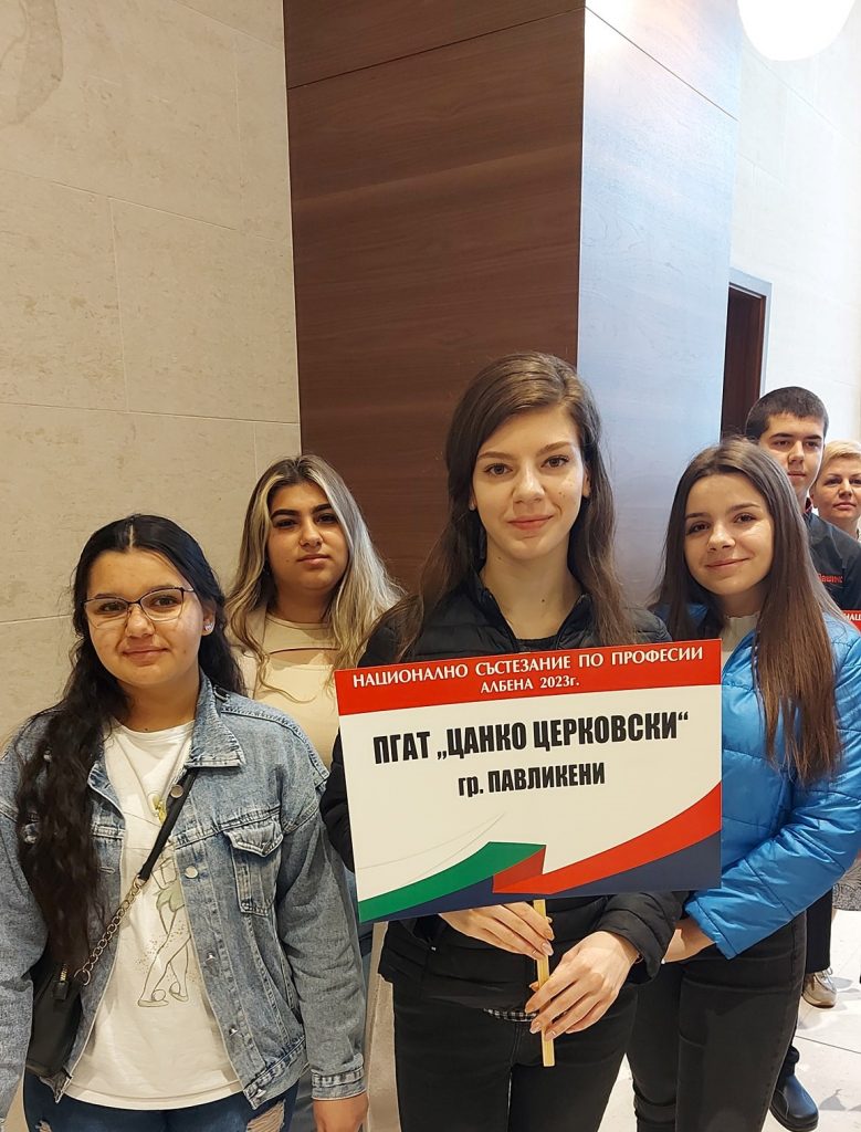 Ивон Първина от XIа клас получи отличие за представянето си в Националното състезание на професиите, което се проведе в КК Албена. Ученичката, от специалност „Селски туризъм“, се състезава в категорията „Най-добър млад хотелиер“, а работата ѝ при решаване на проблемна ситуация при настаняване на гост в хотел, бе оценена високо от жури от Асоциацията на училищата по хотелиерство и ресторантьорство. Съученичките ѝ, Ася Илиева, Василена Ненова и Емилия Цанкова участваха отборно в състезанието. В категория „Най-добър млад аниматор“ момичетата показаха творческо въображение и умения за бързо създаване на дневна анимационна програма. Вечерната им анимация бе авторски комедиен пърформанс за трагико-комичните ситуации, породени при настаняване на чужденец в български хотел. Младите аниматори участваха и в работилница на тема „Изработка на тематична украса от балони“. За участие в състезанието отборът на ПГАТ “Цанко Церковски“ беше подготвен от г-жа Валерия Михайлова, учител по туризъм.