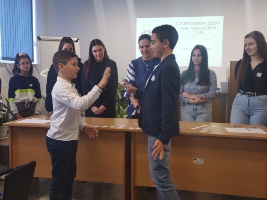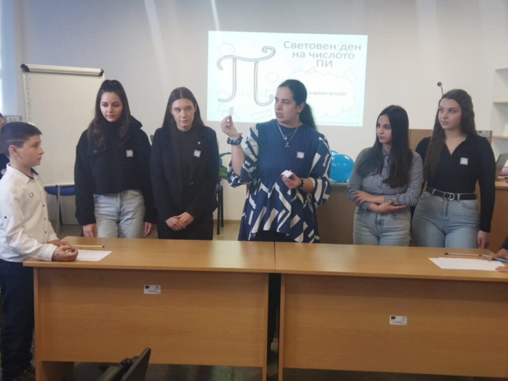 Под това мото премина празникът на числото Пи в Професионалната гимназия. От първия до последния звънец ученици от различни класове подготвяха материали, презентираха, изчисляваха, чертаха, рисуваха и раздаваха стикери. Целта – всеки да се докосне до красотата и загадъчността на числото Пи. Вдъхновени, нашите възпитаници споделиха празника на математиката и със своите малки приятели от ОУ „Св. Климент Охридски“. Всички четвъртокласници получиха специални картички със занимателни игри, изработени от учениците от специалност „Полиграфия“.
