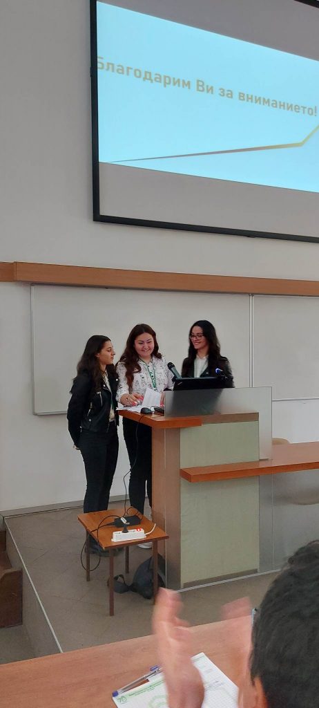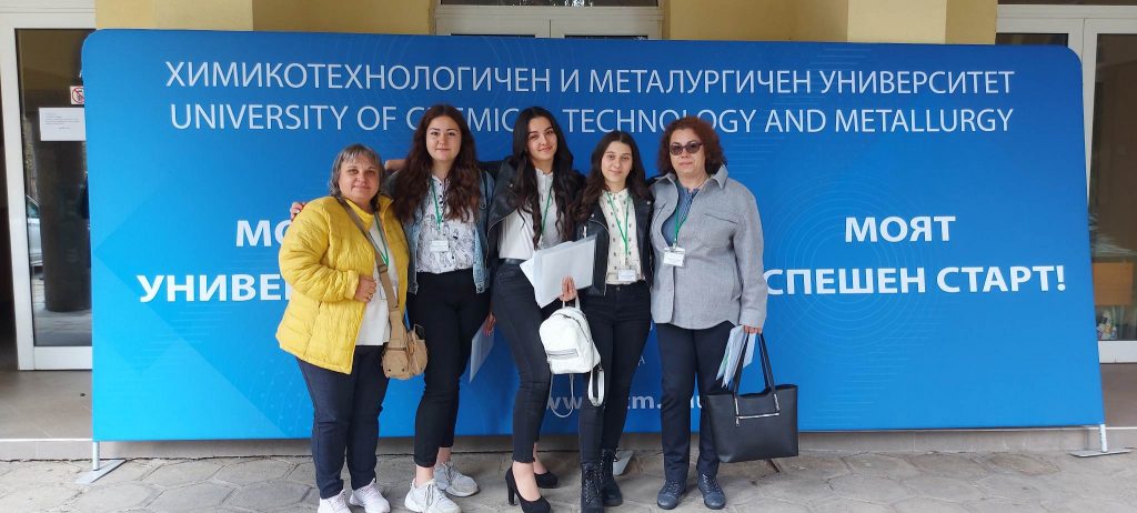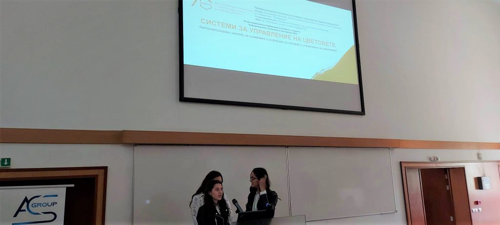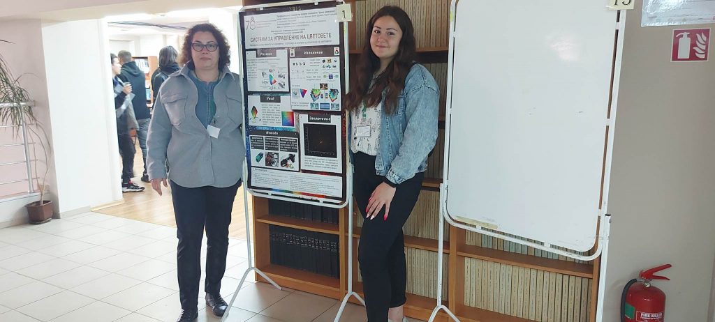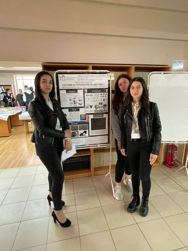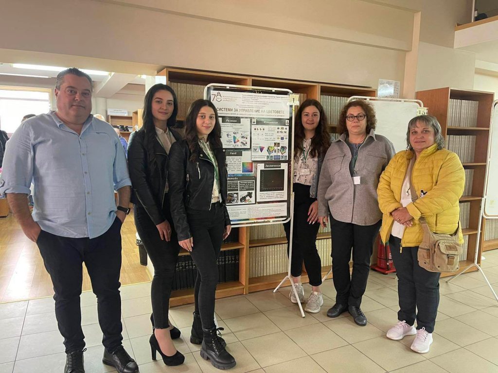 Ученици от XIв клас, специалност „Полиграфия“, представиха своя научна разработка на втората национална конференция „Информационни технологии и автоматика“, организирана от Химикотехнологичен и металургичен университет – гр. София. На събитието, което бе под патронажа на Президента на Република България, Александра Христова, Валентина Великова, Илиян Здравков и Мария Кирвикова представиха доклад на тема „Системи за управление на цветовете“. Разработката им бе сред най-добрите доклади на конференцията и е включена в официалния сборник на събитието, редом с трудовете на студенти и докторанти. Блестящото представяне на нашите ученици им донесе и грамоти от Райхле и Де – Масари България Пръдакшън ЕООД и от ХТМУ. За конференцията учениците бяха подготвени от своите учители – доц. Искрен Спиридонов и Пламенка Николаева, които са и съавтори в научната им разработка.