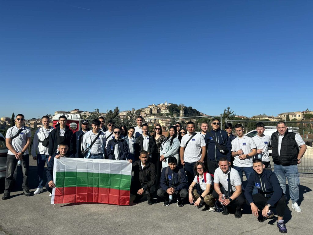 26 десетокласници от ПГАТ „Цанко Церковски“ и трима техни ръководители вече са в сърцето на Италия – красивия град Перуджа, по проект 2025-1-BG01-KA121-VET-000307889, за да трупат ценен професионален опит и международни приятелства. Групата ни беше приветствана от Стефано Поета от Artes Srl, който представи регион Умбрия и град Перуджа, и подчерта голямото значение на програма „Еразъм+“ за бъдещото кариерно развитие на младите специалисти. Първото посещение беше в Държавното професионално училище „Cavour-Marconi-Pascal“. Нашите ученици: обмениха опит със свои италиански връстници; наблюдаваха отблизо работата на парктроник системи и симулатори; видяха иновативни техники за заваряване и работа с 3D принтер. Програмата продължи с посещение в пресцентъра „Grafidea“. Там учениците от специалност „Полиграфия“ се докоснаха до реалната работна среда, разглеждайки модерна печатна преса, прецизни машини за рязане и нови технологии в графичния дизайн. Очаквайте още новини от италианското приключение нашите десетокласници.