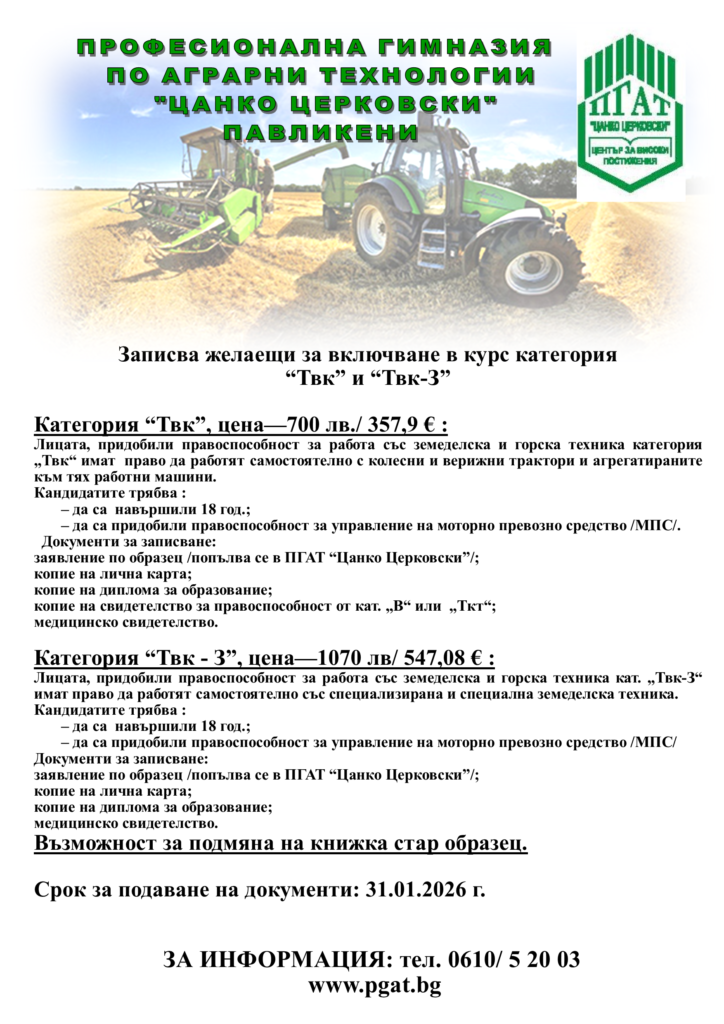 гр. Павликени, бул.: "Руски" №46, тел. 0610/5 20 03
