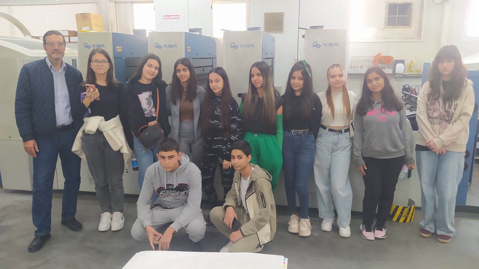 Учениците от 8а клас, специалност „Полиграфия“, направиха важна крачка към своята бъдеща професия, като посетиха печатница „Сира“ ООД – Велико Търново. Управителят на фирмата, Стефан Василев, ги приветства и разказа за историята и развитието на печатницата, както и за съвременните технологии, използвани в производството.