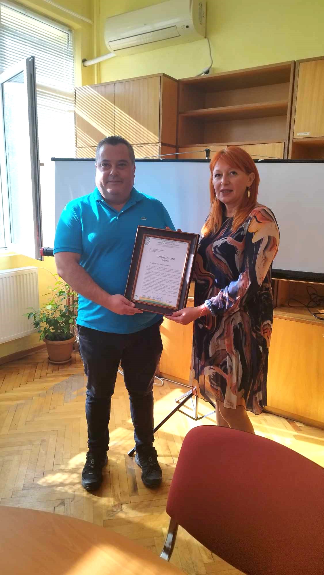 В навечерието на 1 ноември – Денят на народните будители, директорът на ПГАТ „Цанко Церковски“ Миглена Желязкова връчи благодарствени адреси на двама дългогодишни партньори на училището. Председателят на борда на директорите на УНИПАК АД – инж. Тодор Чаков и преподавателят в Химикотехнологичен и металургичен университет София – доц. д-р инж. Искрен Спиридонов. Признанието на целия екип и учениците на училището е свързано с безспорните им заслуги за утвърждаването на професионалното образование и устойчивото развитие на специалностите „Полиграфия“ и „Машини и системи с ЦПУ“.