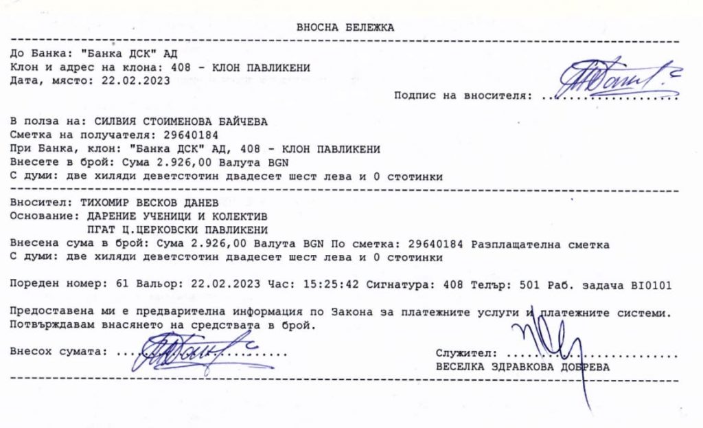 На 21.02.2023г. учениците, съвместно с ръководството, учителите и служителите проведоха Благотворителен базар в помощ на Силвия Байчева.
