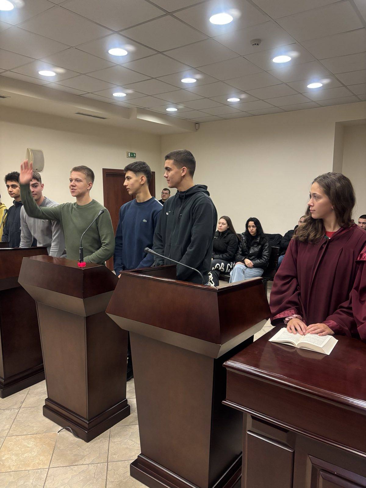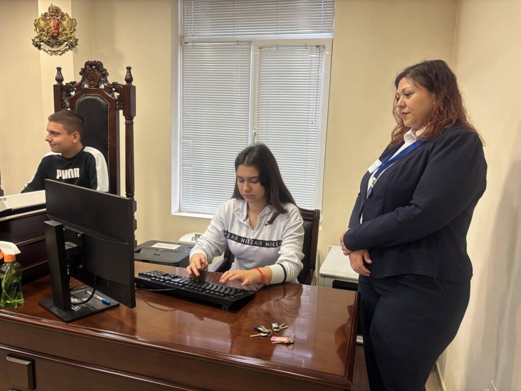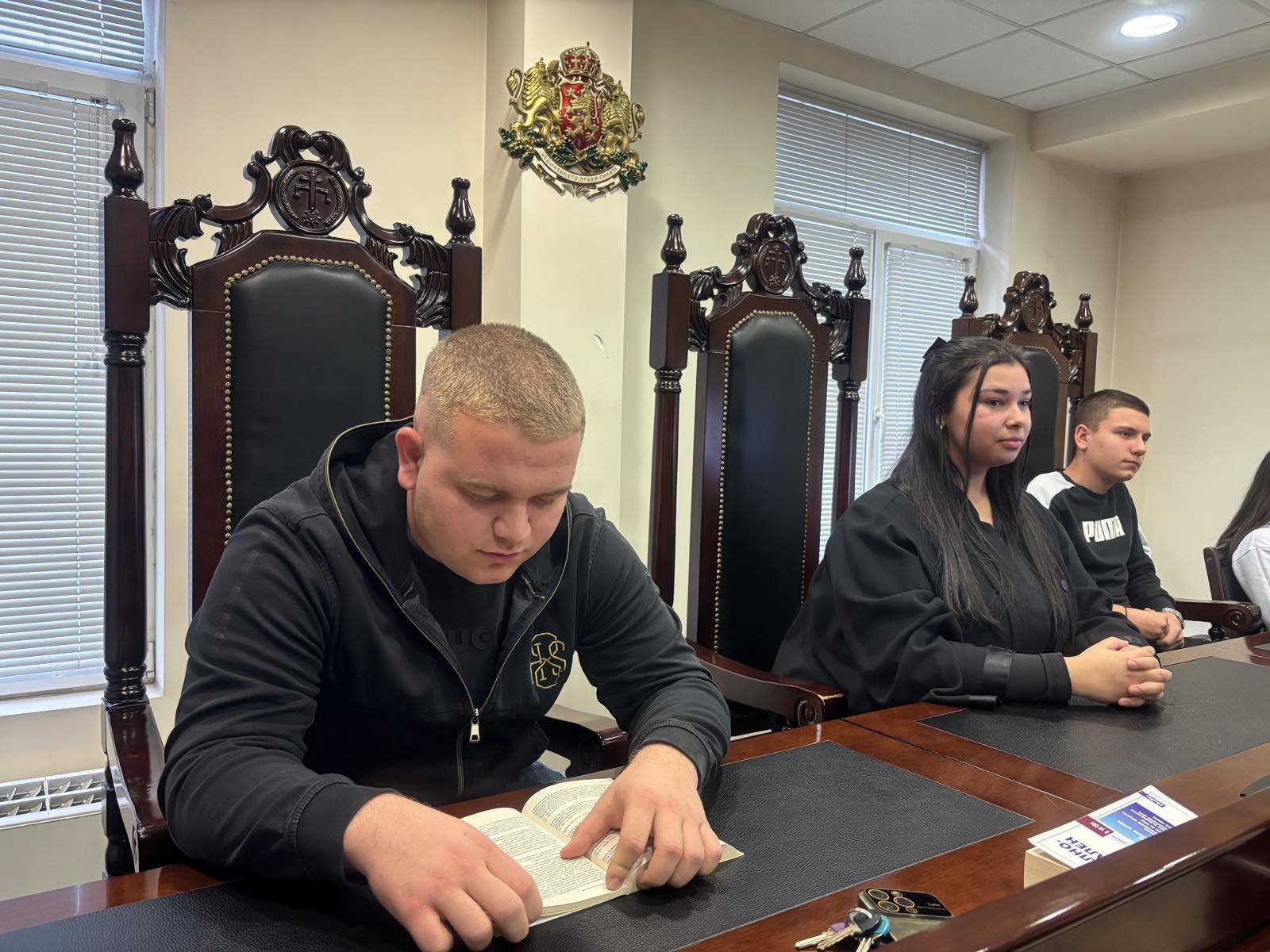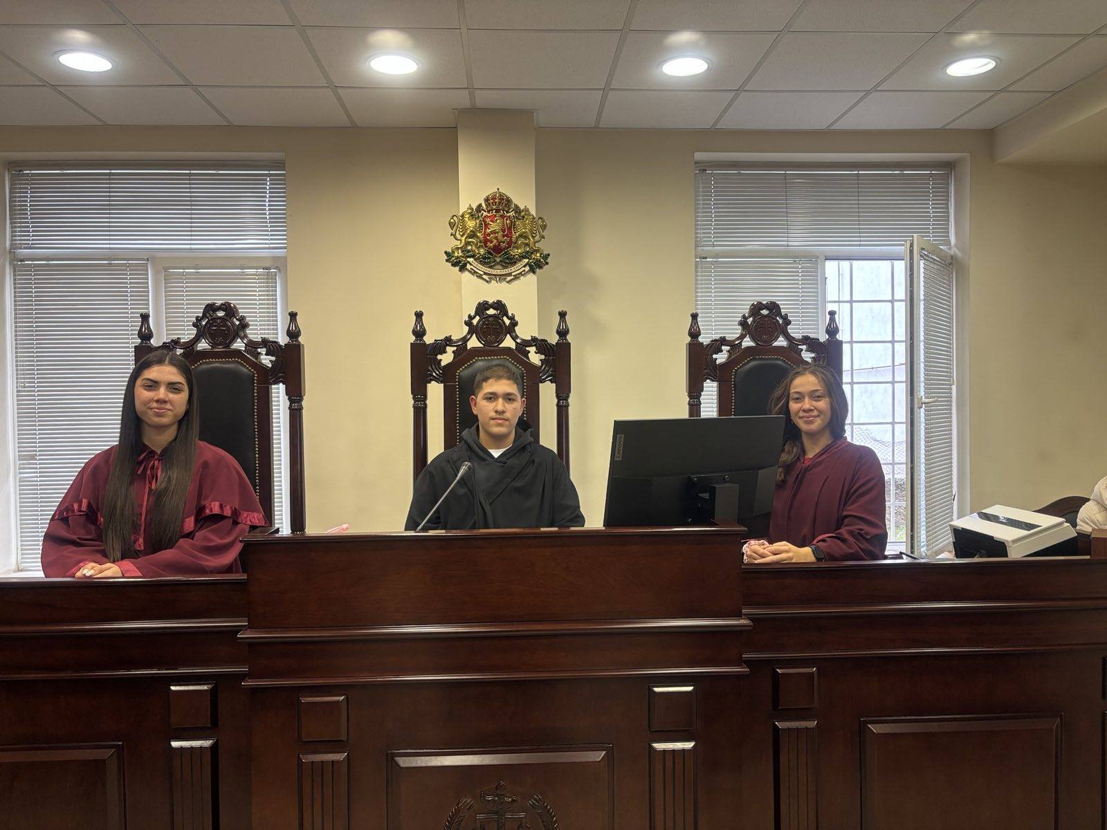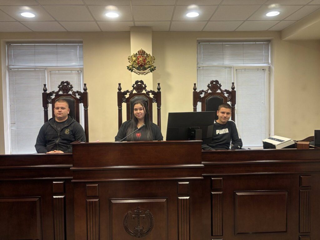 В Деня на отворените врати на Районния съд младежите имаха възможност отблизо да се запознаят с работата на съдебната институция, като влязоха в различни роли – на прокурори, съдии, подсъдими, адвокати и свидетели, и участваха в симулиран съдебен процес.